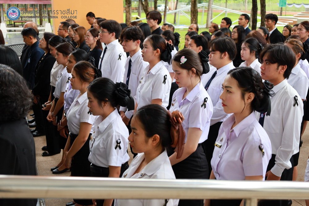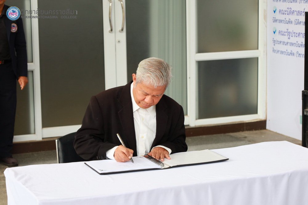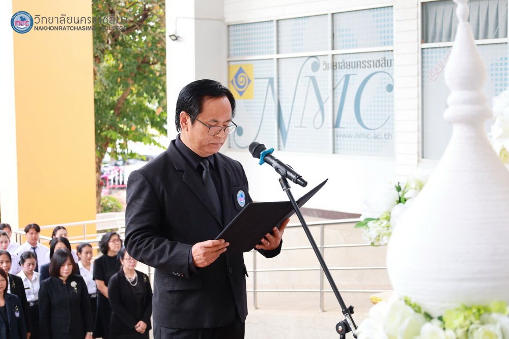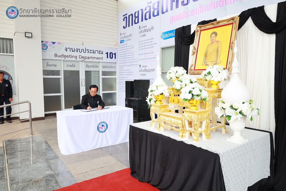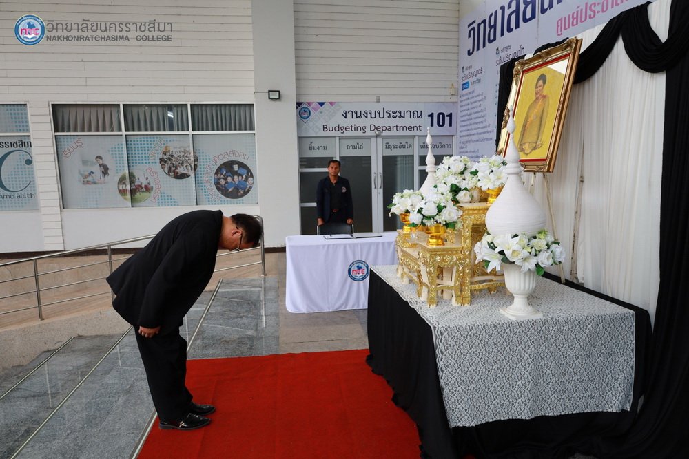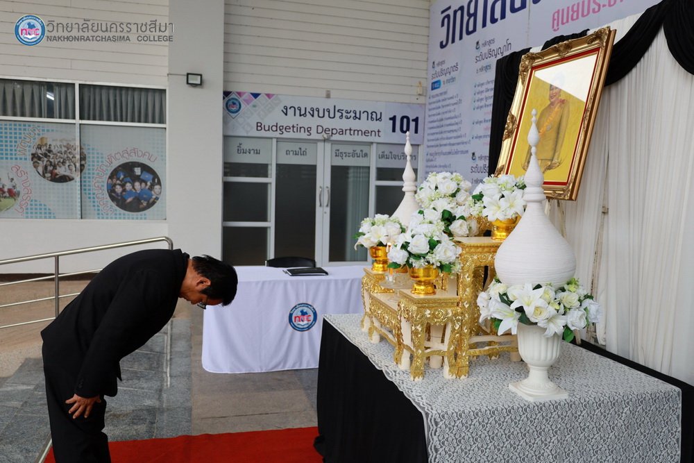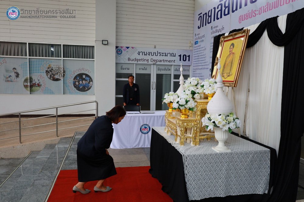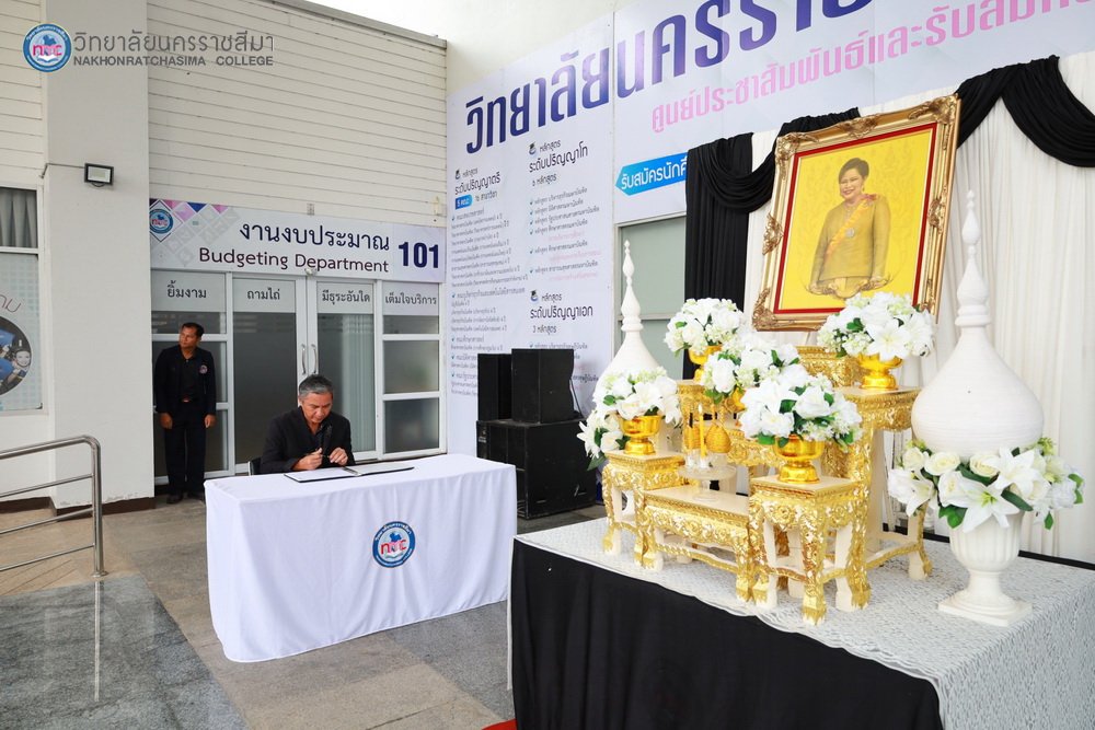 : เมื่อวันศุกร์ที่ 7 พฤศจิกายน พ.ศ. 2568 ท่าน รศ.ดร.วิภาส ทองสุทธิ์ อธิการบดีวิทยาลัยนครราชสีมา พร้อมด้วยคณะผู้บริหาร คณาจารย์ เจ้าหน้าที่ และนักศึกษา เข้าร่วมพิธีถวายความอาลัยแด่สมเด็จพระนางเจ้าสิริกิติ์ พระบรมราชินีนาถ พระบรมราชชนนีพันปีหลวง ซึ่งจัดขึ้น ณ บริเวณหน้าอาคารวิทยาลัยนครราชสีมา