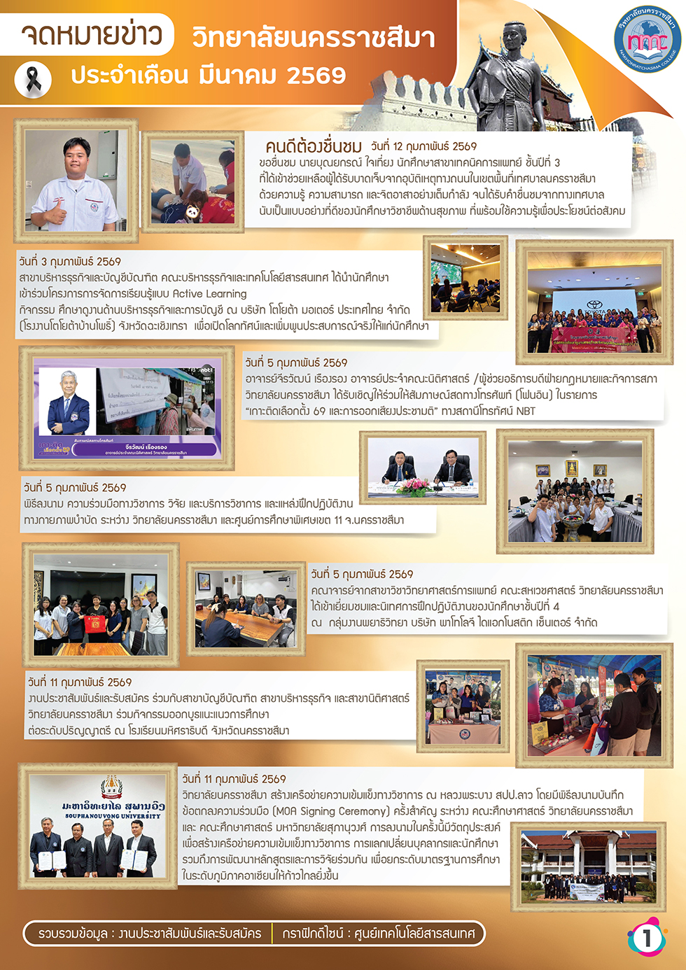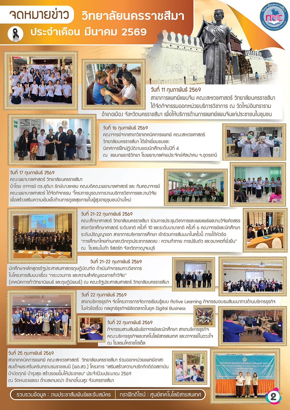 โครงการอบรมเพิ่มพูนทักษะการดูแลมารดาหลังคลอดด้วยศาสตร์การแพทย์แผนไทย ระหว่างวันที่ 19–20 มีนาคม 2569 ณ ห้องประชุมชั้น 3 วิทยาลัยนครราชสีมา